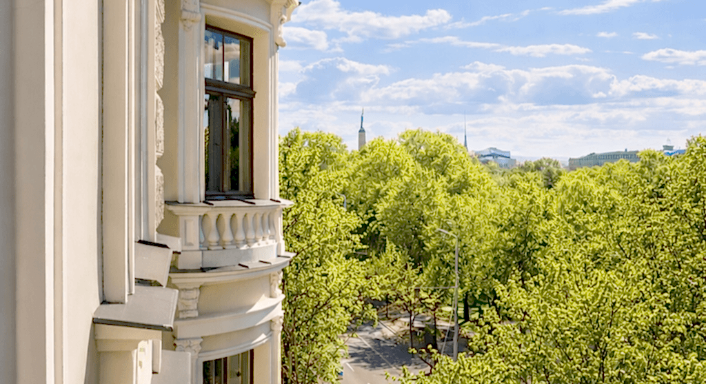 The historic fireplaces and large windows overlooking the lively Raiņa Boulevard and Bastejkalns give the space a special atmosphere and a Laimz lightness